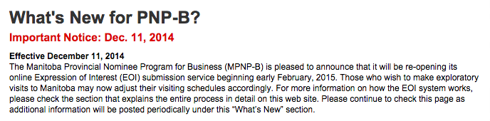 曼尼托巴省提名商业类别项目将于2015年2月初重新开放EOI申请。想要通过商考加分的申请人现在开始可以安排商务考察了。