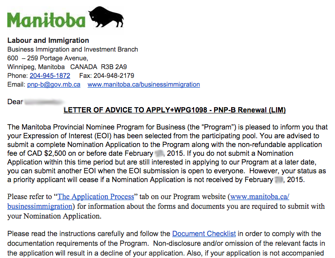 * 附上近期通过曼省移民局EOI申请的获批信件实例